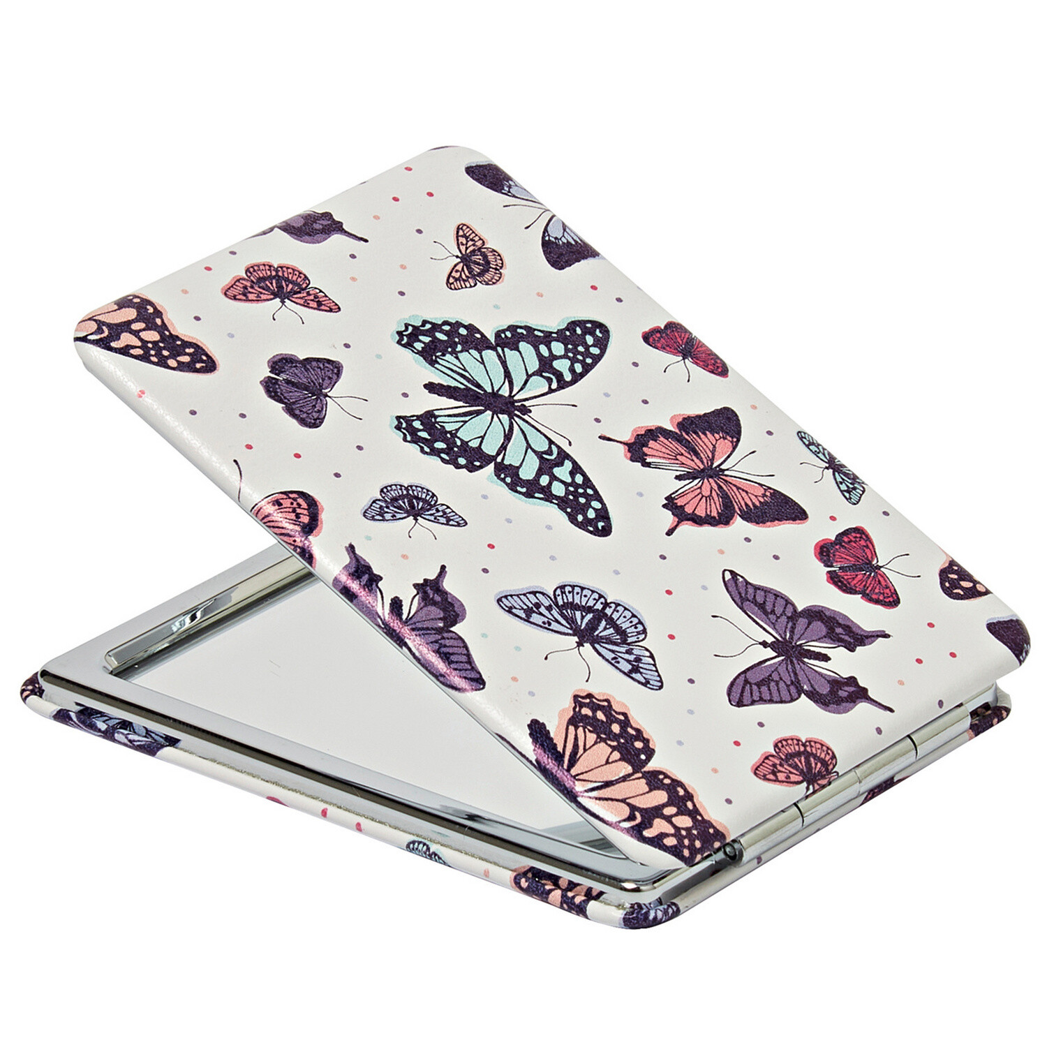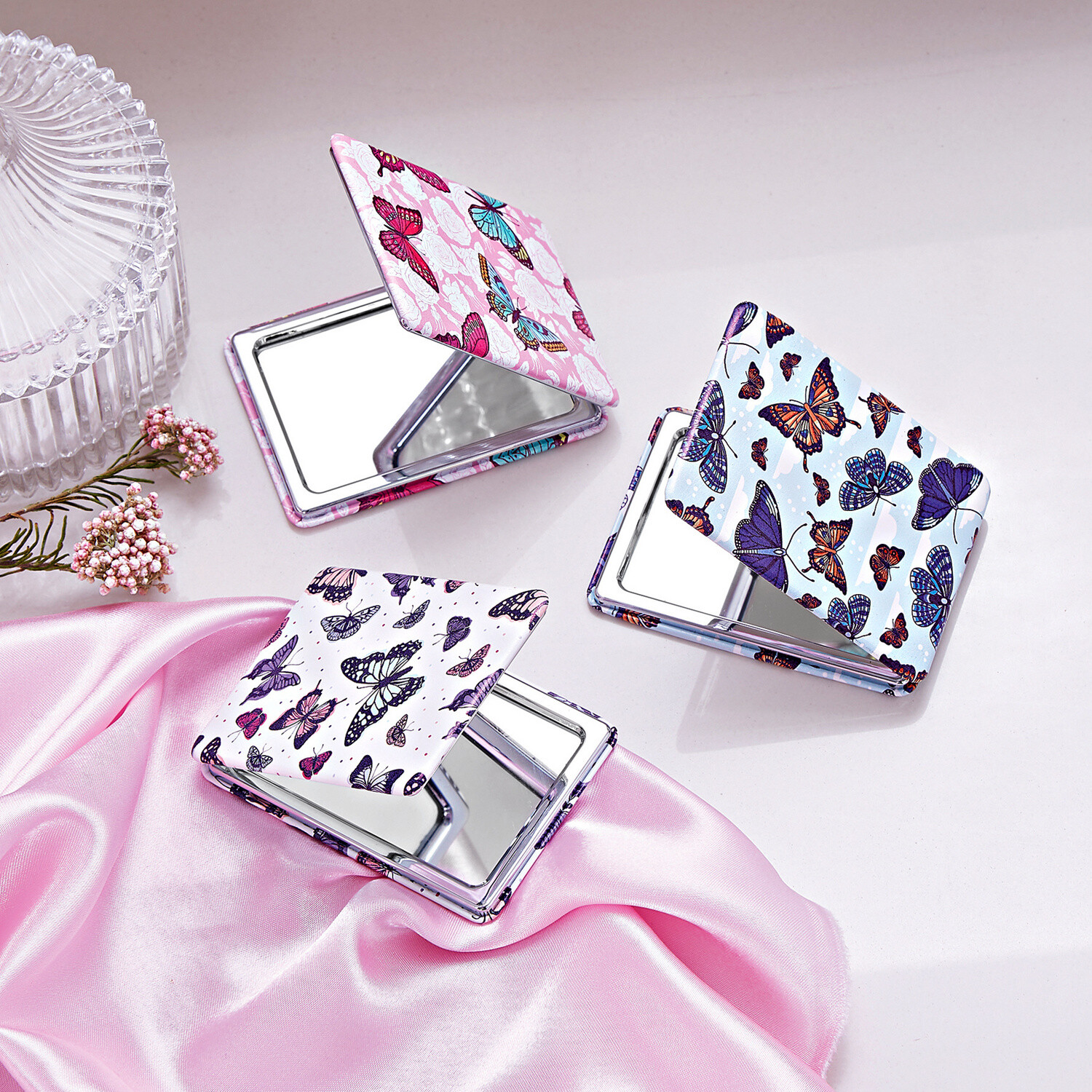 Jedno do každé kabelky: 3 skládací zrcátka s barevným motýlím vzorem - jedna strana zvětšuje 2x. Skládací, se 2 zrcátky. Jedno z nich zvětšuje 2x. Překrásné barvy. Sada 3 ks.