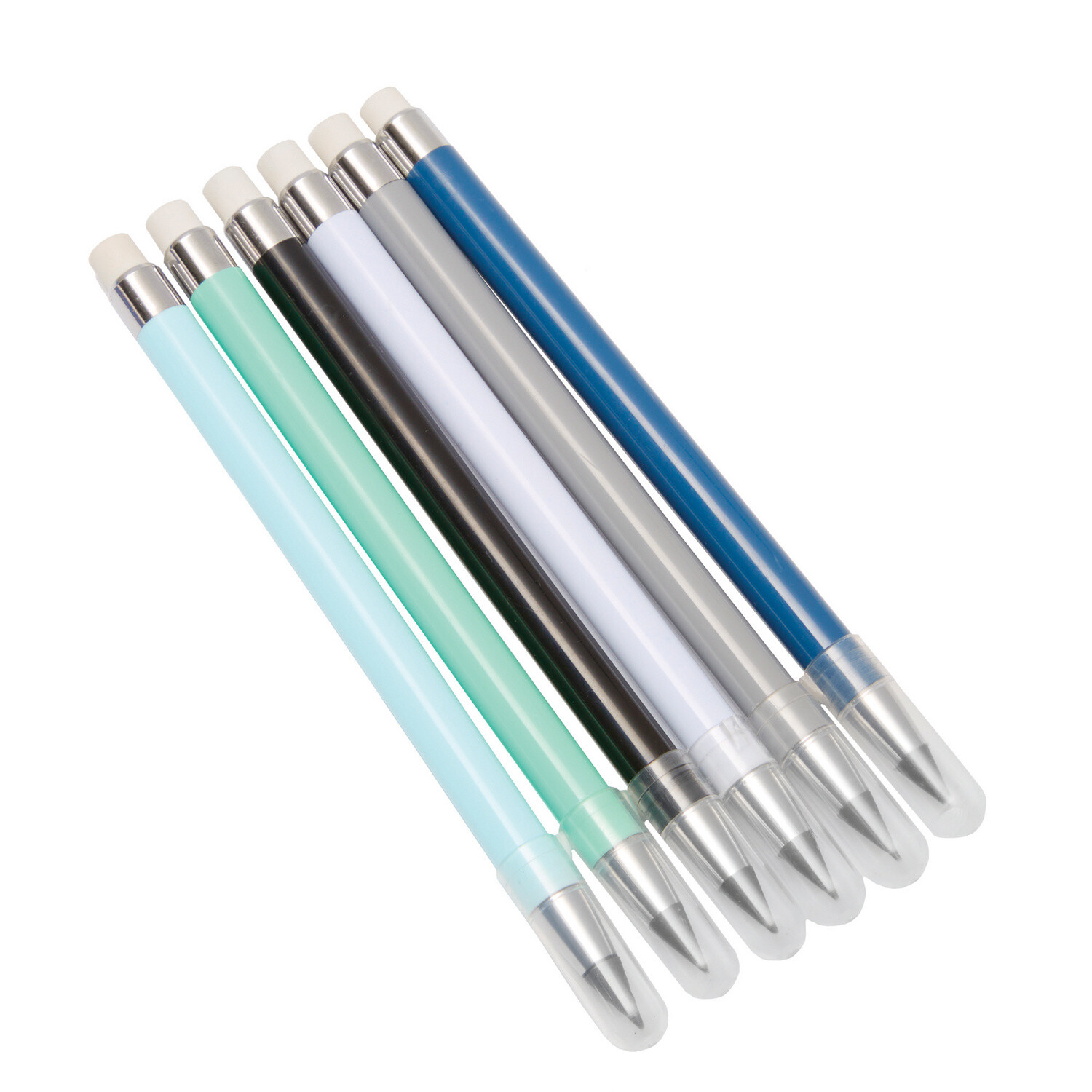 Tyto speciální tužky píší jako běžné tužky - ale nelámou se, neopotřebovávají a nepotřebují ořezávátko. Díky inovativnímu grafitovému jádru jsou ideální na poznámky, hádanky a seznamy. Píše jako normální tužka. Žádné ostření, žádné opotřebení. Nerozbitné grafitové jádro. Sada 6 ks.