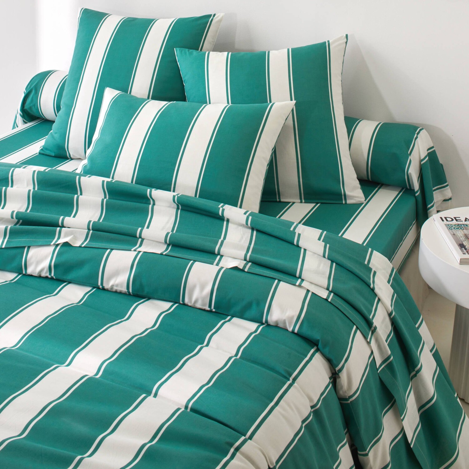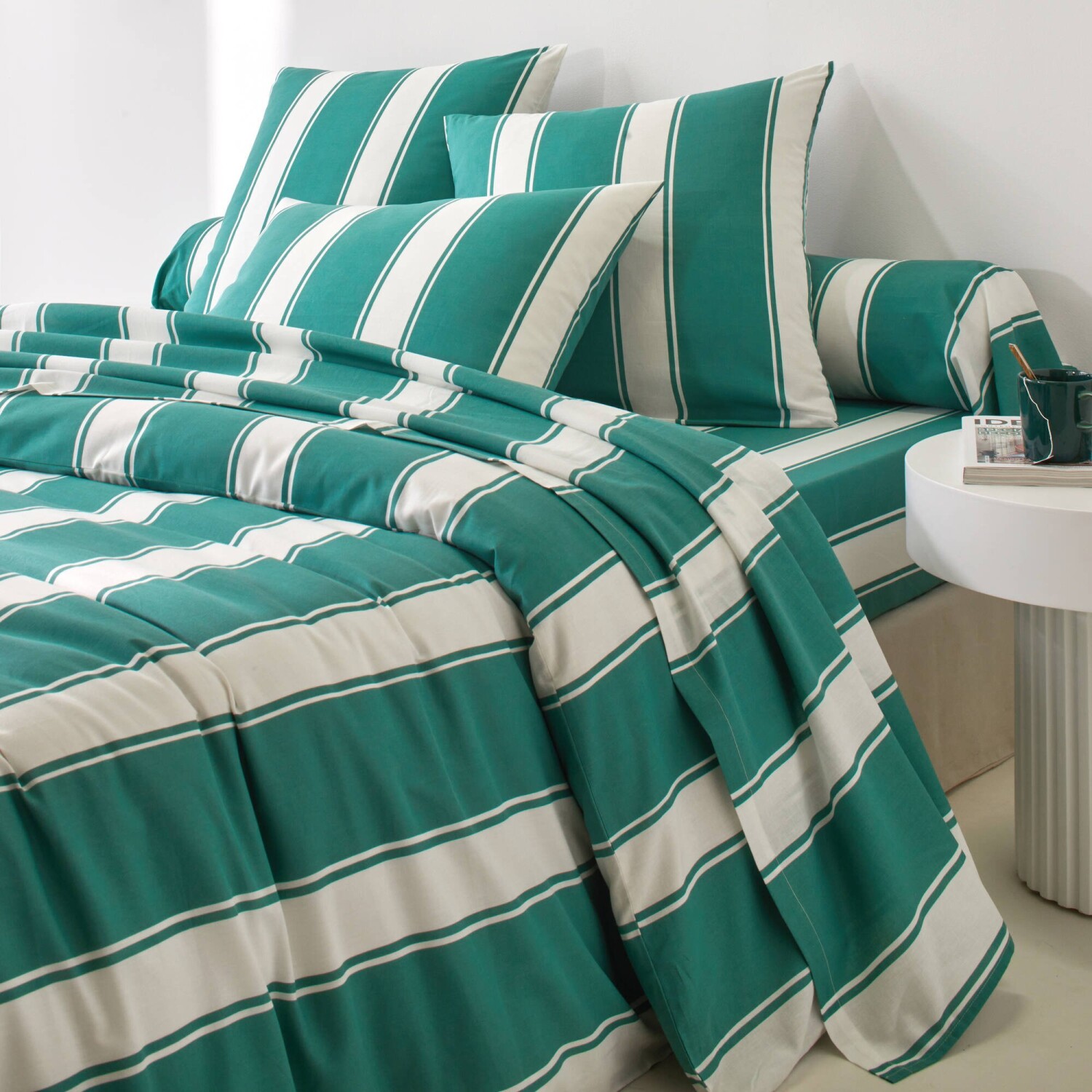 Kouzlo dovolené zalité sluncem a umění žít přítomným okamžikem se odráží v povlečení s motivem lehátka s kontrastními a jedinečnými pruhy. Zkombinujte ho s květinovými detaily a dodejte ložnici osobitý vzhled! Z přirozeně jemného a pevného materiálu. Kolekce se souvislým potiskem. Povlak na polštář. Povlak na váleček s potiskem. Povlak na přikrývku s potiskem, zapínání na knoflíky. Klasické prostěradlo s potiskem. Napínací prostěradlo s potiskem. Exkluzivní návrh Blancheporte. Certifikát Made In Green od OEKO-TEX®. Kromě ověření několika stovek chemických látek (STANDARD 100), které přispívají k vysoké bezpečnosti, toto označení zaručuje ohleduplné výrobní principy a kontrolované společenské postupy (certifikát STeP). Pro ochranu životního prostředí doporučujeme prát na 40 °C a sušit volně na vzduchu.