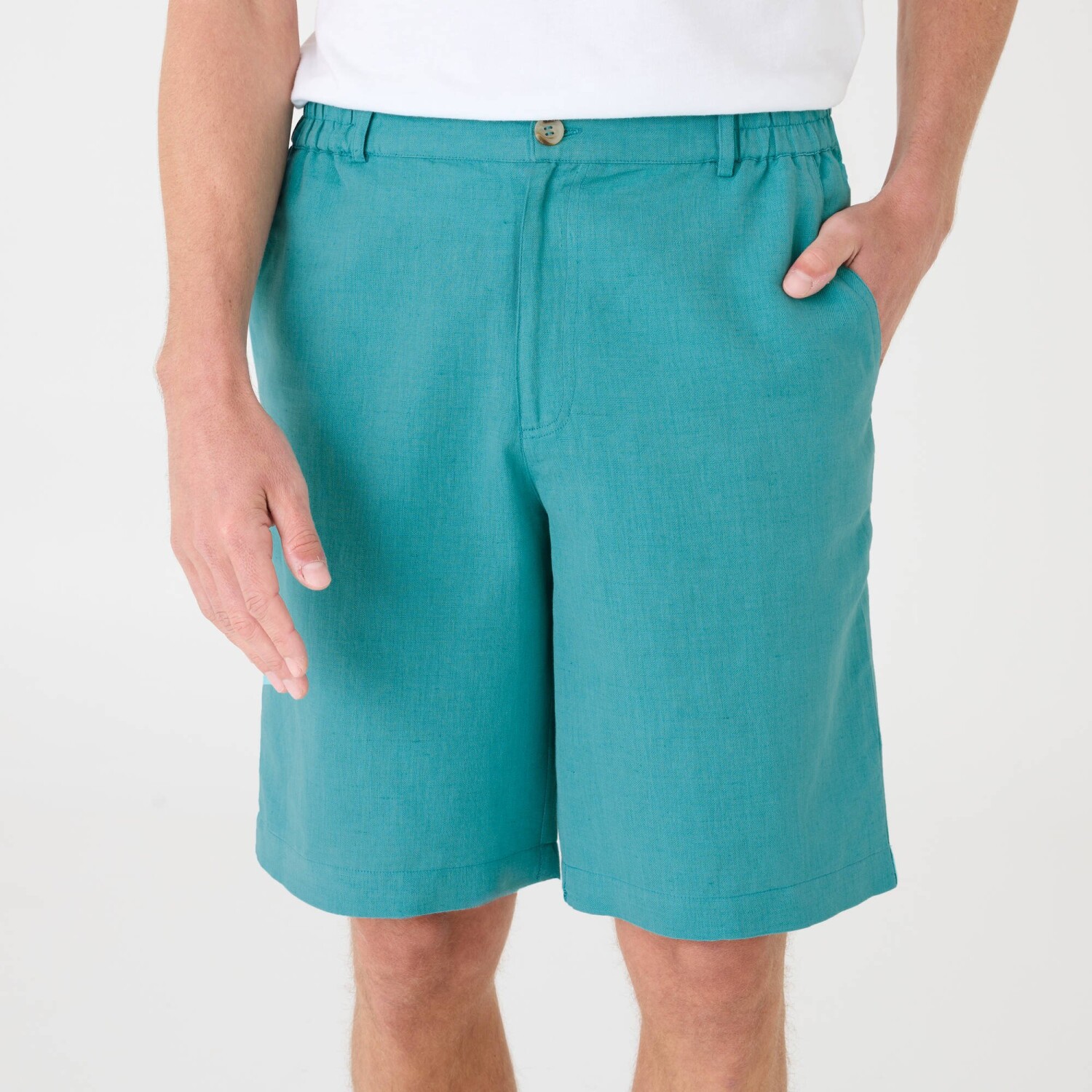Lněný materiál poskytne příjemné osvěžení v horkém létě a Vy se tak budete cítit skvěle. Perfektní s košilí do města nebo s tričkem pro sportovní aktivity, nenechte si uniknout bermudy z bavlny-lnu. Letní materiál příjemný na nošení. Vzadu a na bocích pružný pas. 2 klínové kapsy vpředu. 2 našité kapsy vzadu. Nohavice zakončené lemem. Lze prát v pračce.