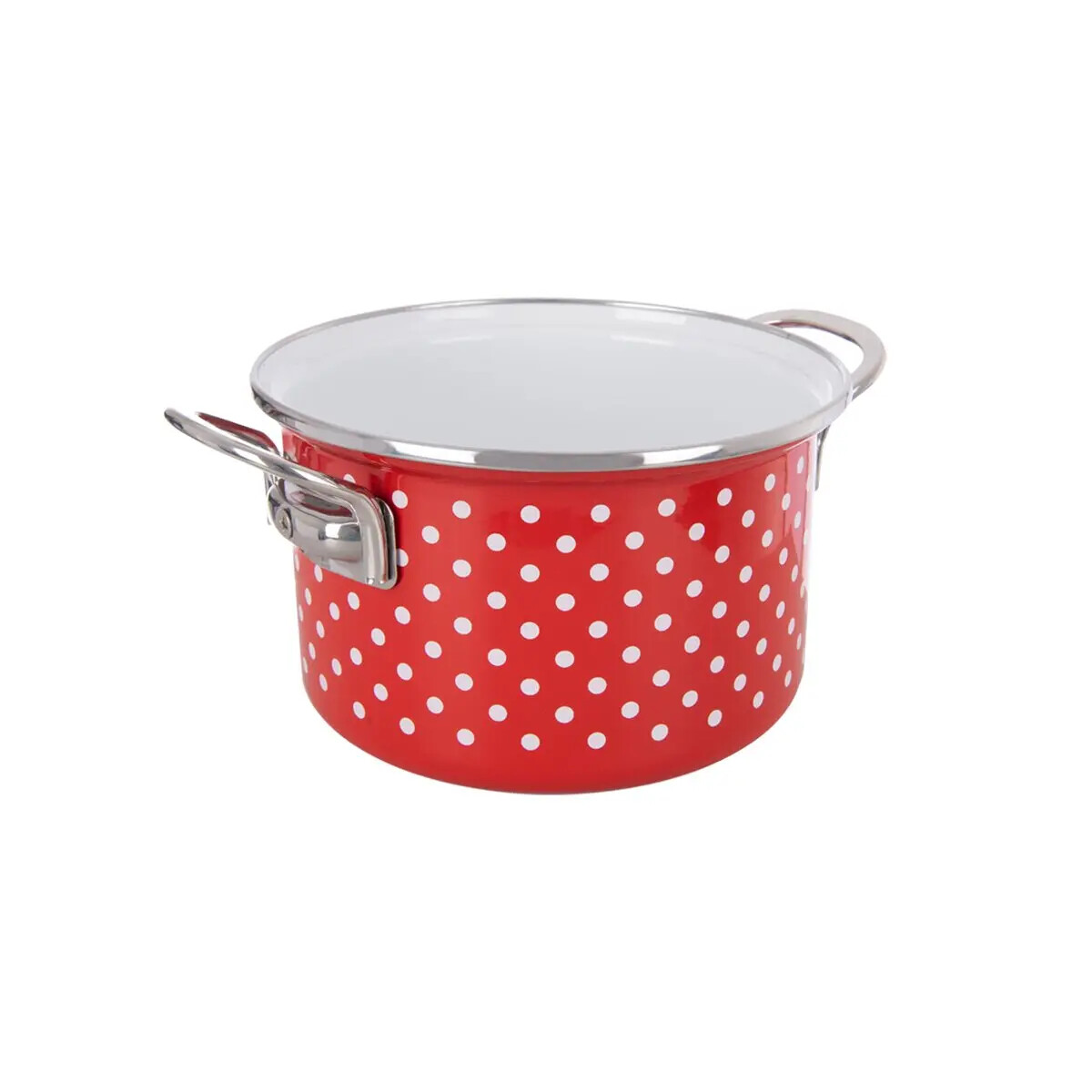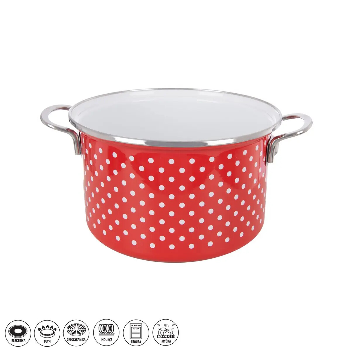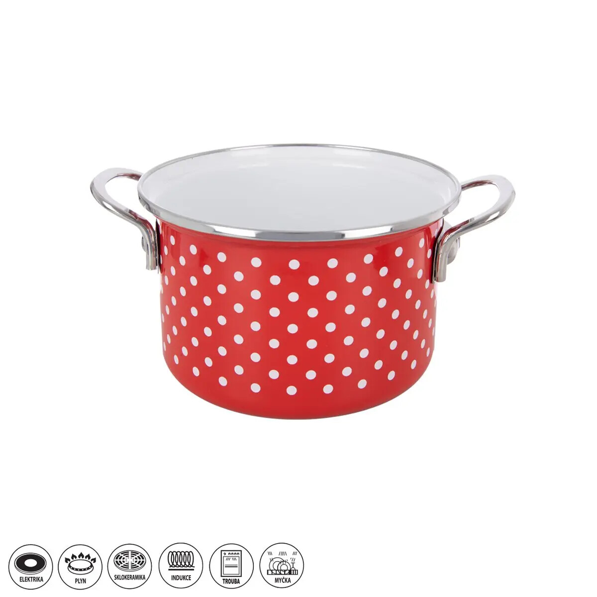 Smaltované nádobí nabízí možnost zdravého vaření bez uvolňování nebezpečných a nežádoucích látek do jídel. Nádobí naakumuluje teplotu a dlouho ji udrží. Vyznačuje se dlouhou životností, zdravotní nezávadností pro alergiky, univerzálním použitím. Sortiment smaltovaného nádobí v provedení TEČKA doplňuje nerezové kování. Hrnce se výborně hodí na přípravu polévky, omáčky, vaření těstovin, brambor a jiných příloh. Jsou vhodné na všechny typy spotřebičů včetně indukce, do trouby, do myčky na nádobí. Nejsou vhodné do MVT. Na tyto hrnce se hodí skleněné poklice z naší nabídky kat. č. C009014016, C009014020. Materiál: smaltovaný plech, nerez (lem), pochromovaný kov (držadla). Rozměry: průměr 16 cm, objem 2 l; průměr 20 cm, objem 4 l.