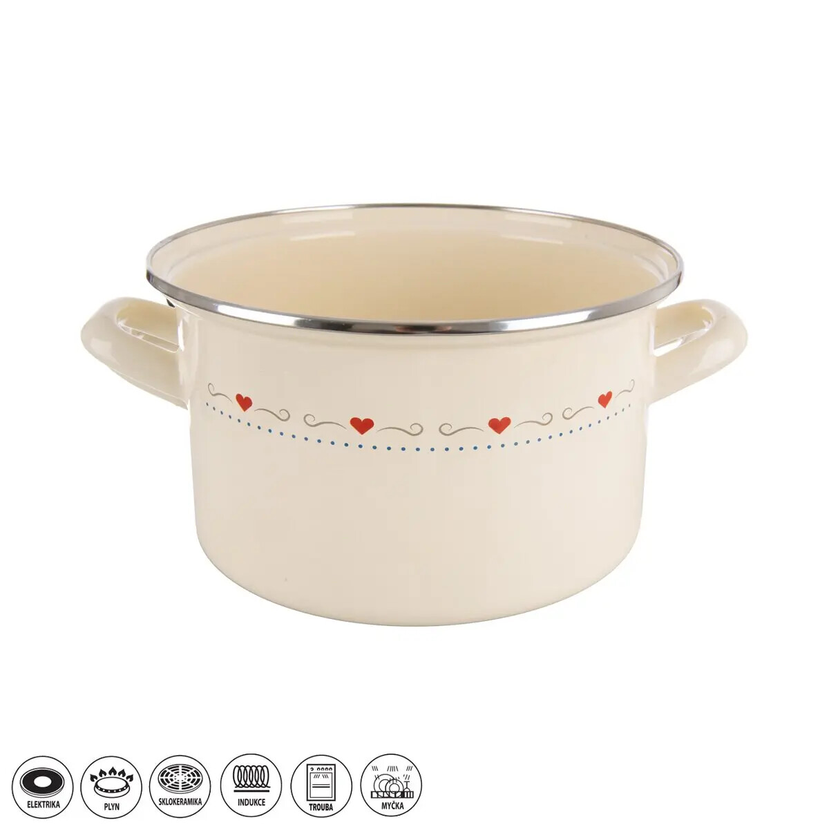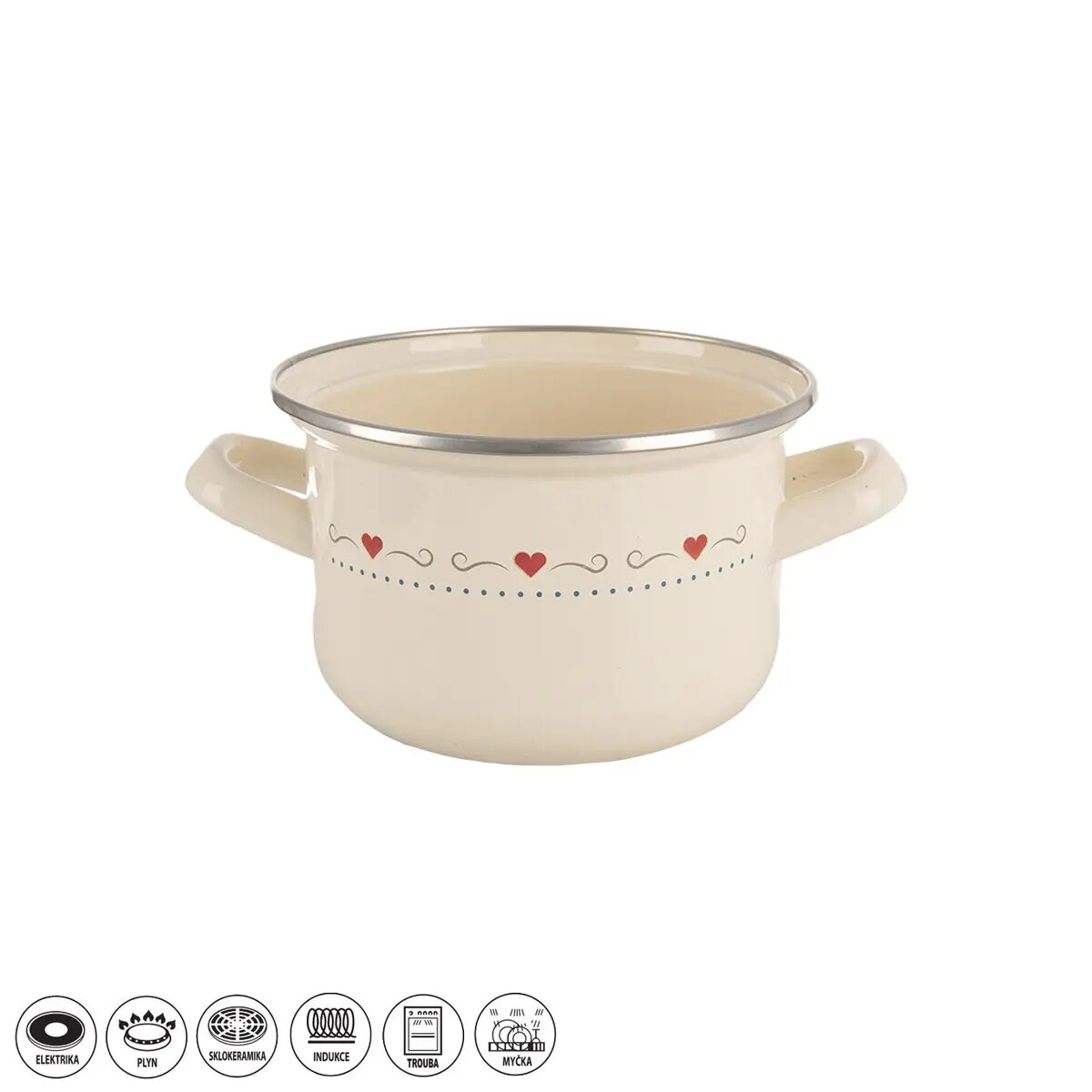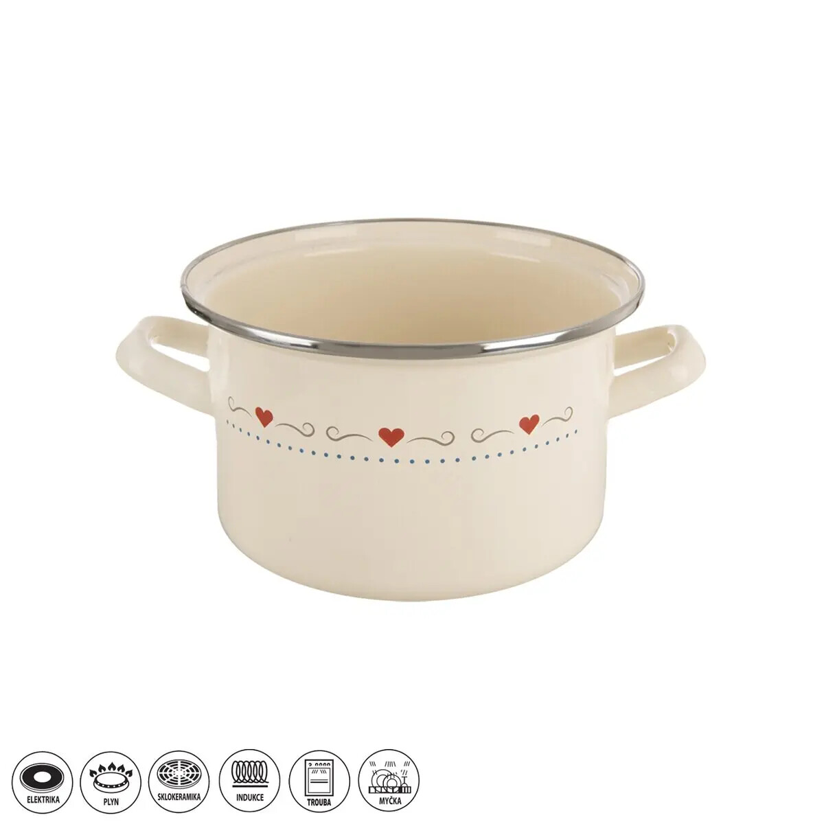 Smaltované nádobí nabízí možnost zdravého vaření bez uvolňování nebezpečných a nežádoucích látek do jídel. Nádobí naakumuluje teplotu a dlouho ji udrží. Vyznačuje se dlouhou životností, zdravotní nezávadností pro alergiky, univerzálním použitím. Sortiment smaltovaného nádobí v provedení TONČA doplňuje nerezové kování. Hrnce se výborně hodí na přípravu polévky, omáčky, vaření těstovin, brambor a jiných příloh. Jsou vhodné na všechny typy spotřebičů včetně indukce, do trouby, do myčky na nádobí. Nejsou vhodné do MVT. Na tyto hrnce se hodí skleněné poklice z naší nabídky kat. č. C009014014, C009014016, C009014018, C009014020. Materiál: smaltovaný plech, nerez (lem). Rozměry: průměr 16 cm, objem 1,4 l, výška 10cm; průměr 16 cm, objem 2 l, výška 11 cm; průměr 18 cm, objem 3 l, výška 12 cm; průměr 20 cm, objem 4 l, výška 13 cm.