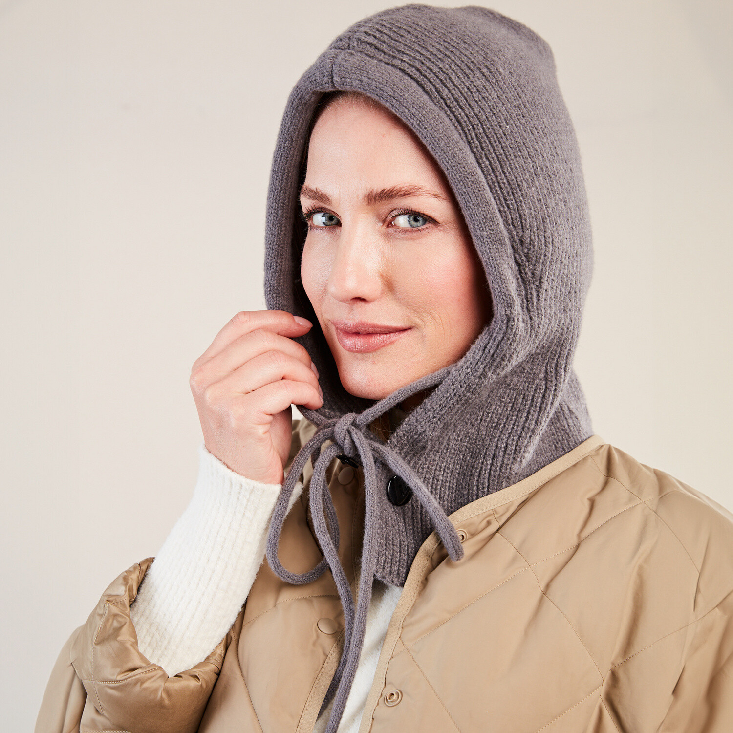 Jednou jako kapuce s nákrčníkem, podruhé jako šála. Se stahovací šňůrkou + knoflíky. Příjemně teplá + měkká. Různé varianty nošení. Lze prát při 30 °C.