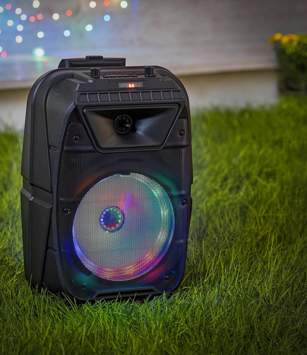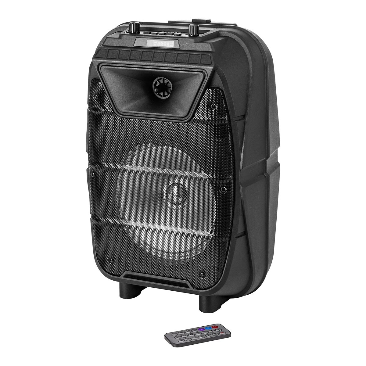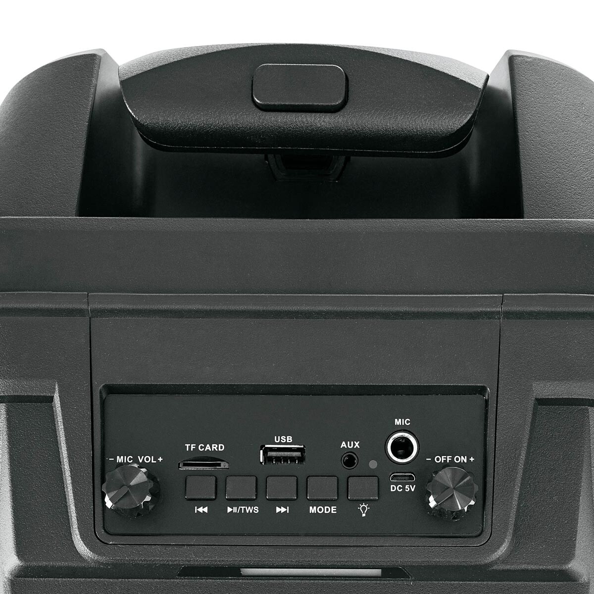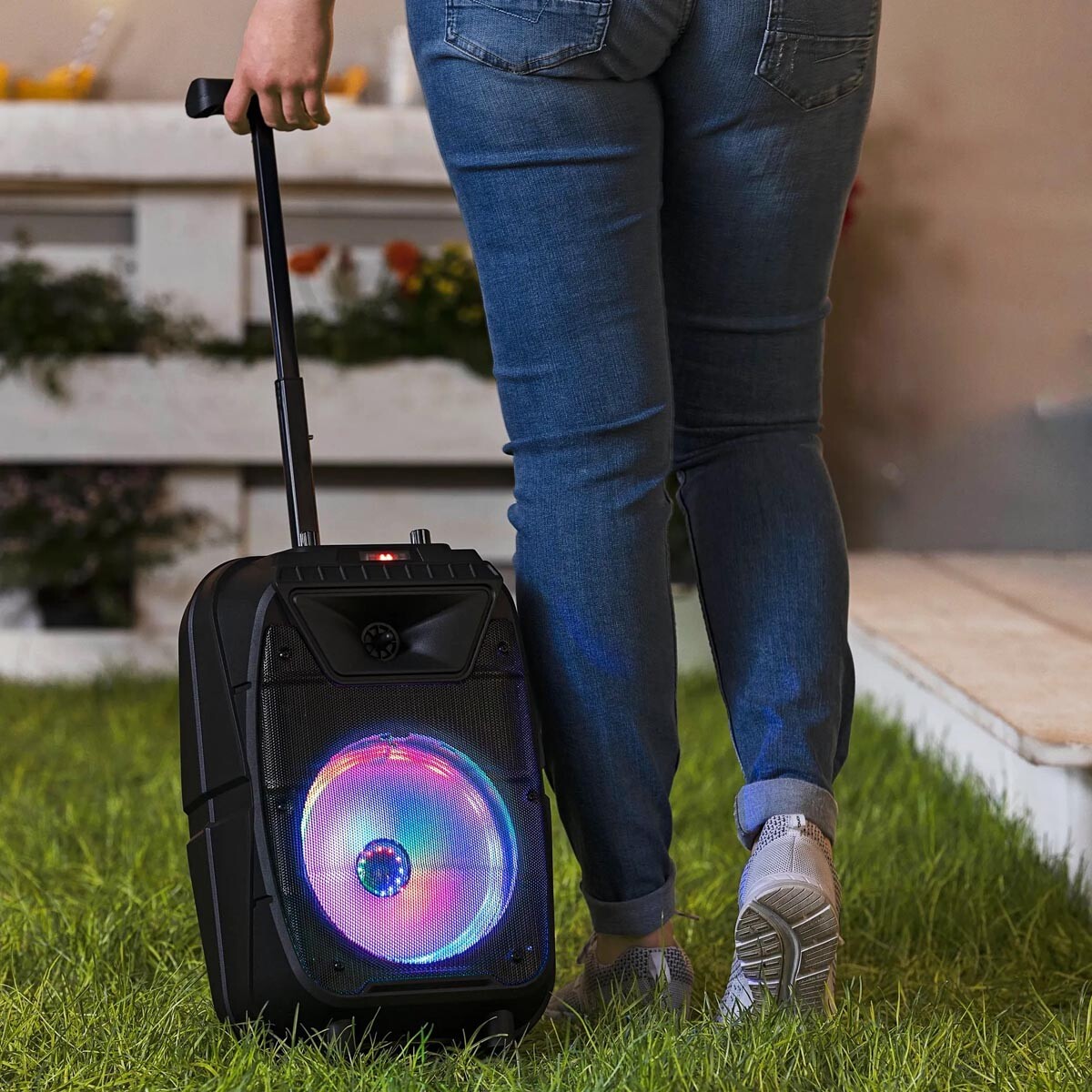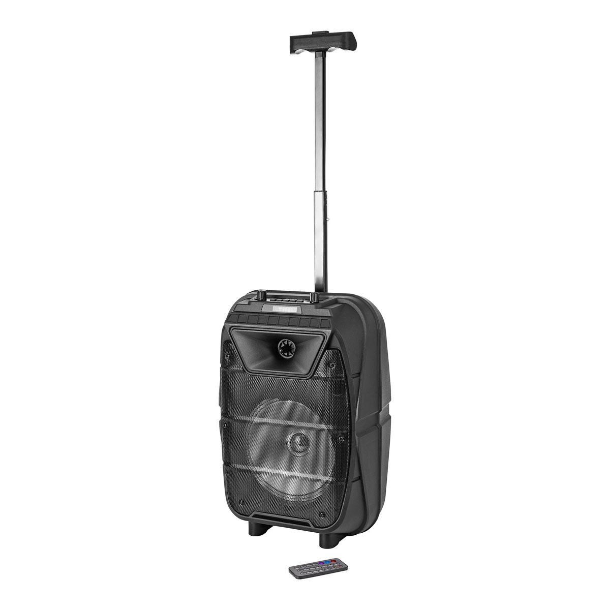Poslouchejte hudbu, kdekoli chcete – se stylovým Bluetooth reproduktorem v podobě pojízdného kufříku. Ať už na zahradě, domácí párty či na cestách – dobíjecí reproduktor všude vytvoří skvělou atmosféru. Včetně LED osvětlení a vstupu pro mikrofon, takže příští karaoke party nestojí nic v cestě. Součástí je dálkové ovládání, nabíjecí USB kabel, Bluetooth, slot pro kartu TF, rádio FM, dobíjecí baterie 3000 mAh (provoz 3-4 hodiny), reproduktor 20 W. Materiál: plast. Rozměry: 27,5 x 23,5 x 47 cm.