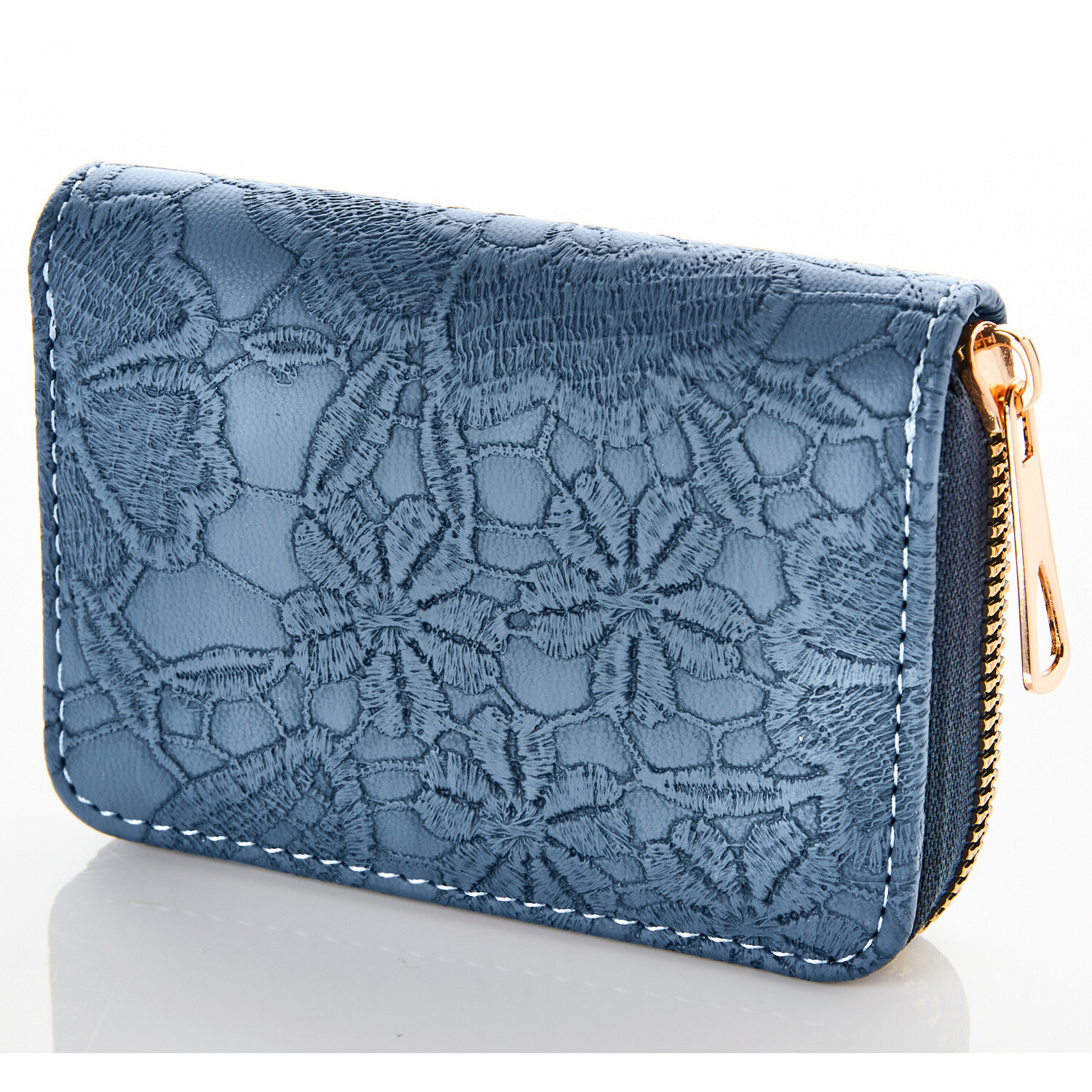Kompaktní pouzdro s elegantním květinovým reliéfem – vejde se do každé kapsy. S devíti přihrádkami na karty a dvěma přihrádkami na bankovky – přehledně uspořádané a zabezpečené proti krádeži dat RFID. Mnoho přihrádek. RFID - ochrana dat. Amélie di Santi.