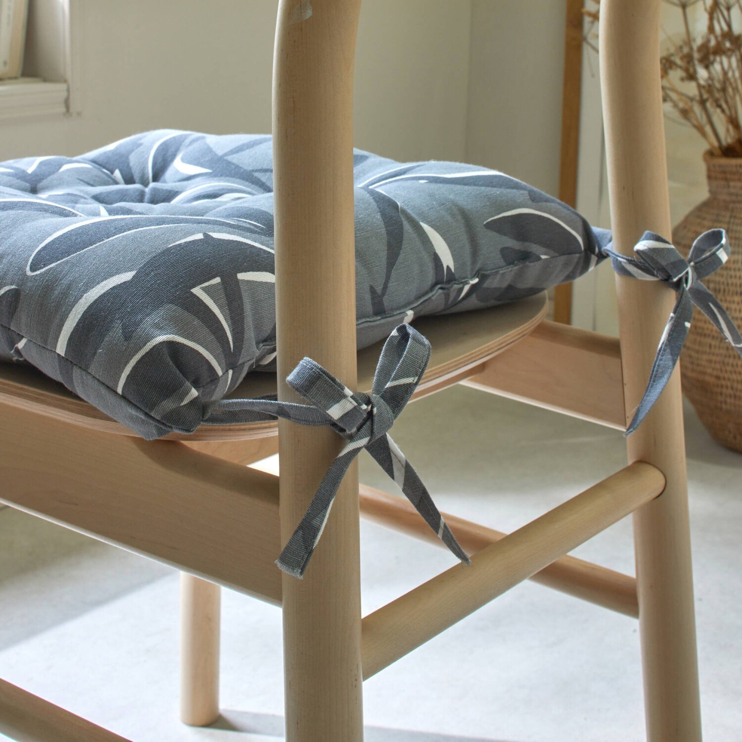Osvěžte Váš interiér sadou podsedáků na židli s potiskem listů. Originální potisk. Prošití do bodů, šňůrky pro zavázání. V sadě 2 stejných kusů.
