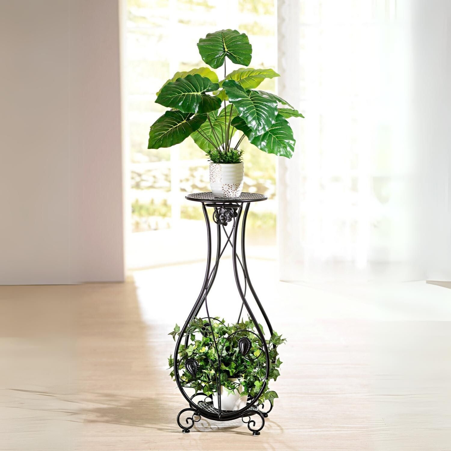 Tyto kvalitní stojany na květiny budou prezentovat Vaše rostliny ve středomořském stylu - uvnitř i venku. S jemným vzorem lístků. Vysoce kvalitní zpracování. Uvnitř + ven. Sada 3 ks.
