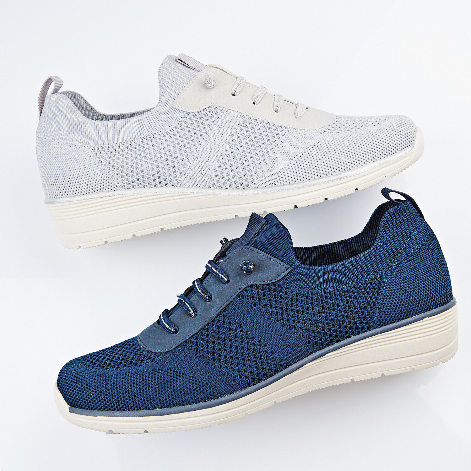 Super lehké a vzdušné, s elastickým třpytivým šněrováním – tyto tenisky mají módní nádech. Jsou úžasně pohodlné, s vyjímatelnou stélkou a protiskluzovou podešví – nazujte je a noste s příjemným pocitem dobrého odpružení. Klínový podpatek cca 3 cm. Super lehké a vzdušné. Elastické třpytivé tkaničky. Protiskluzová podešev. Tlumí každý došlap.