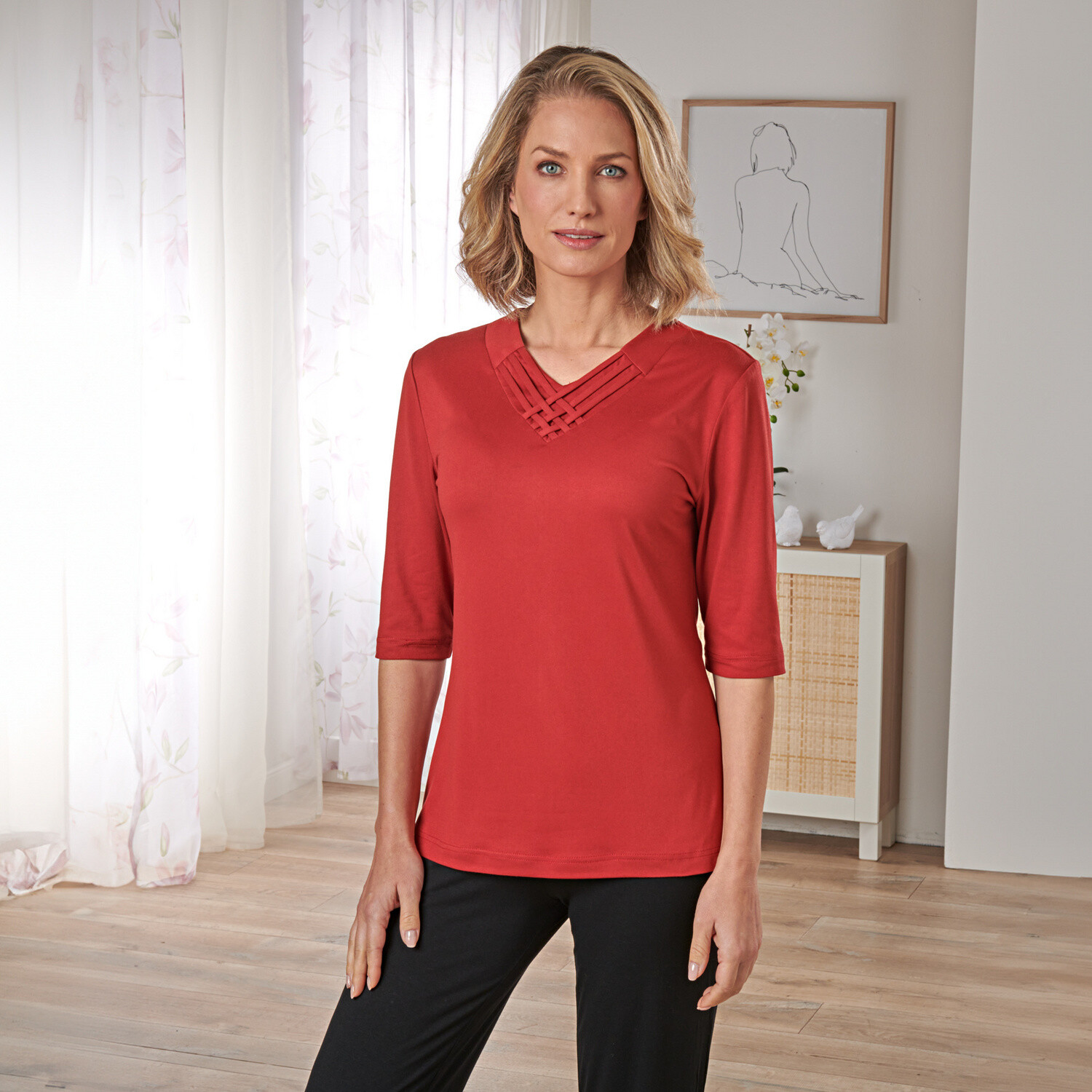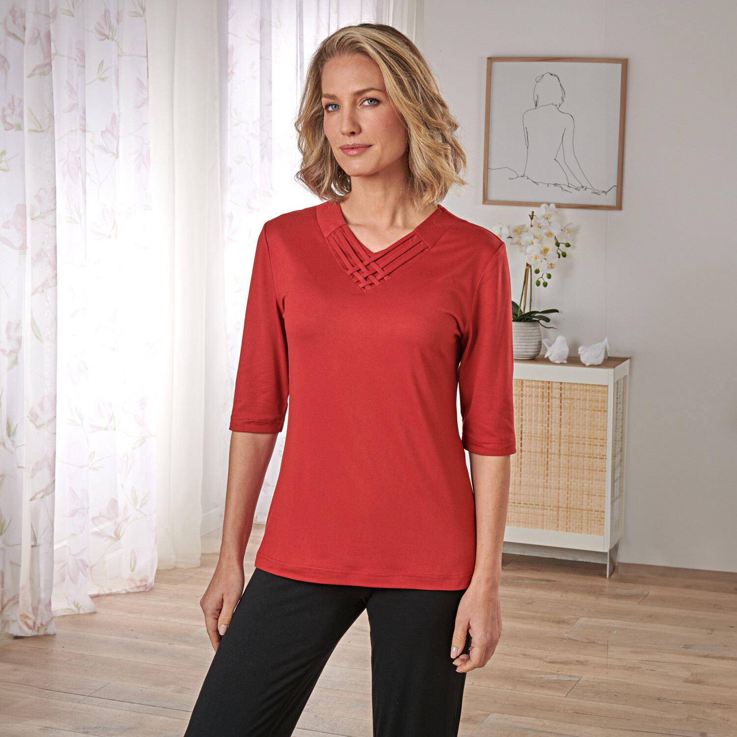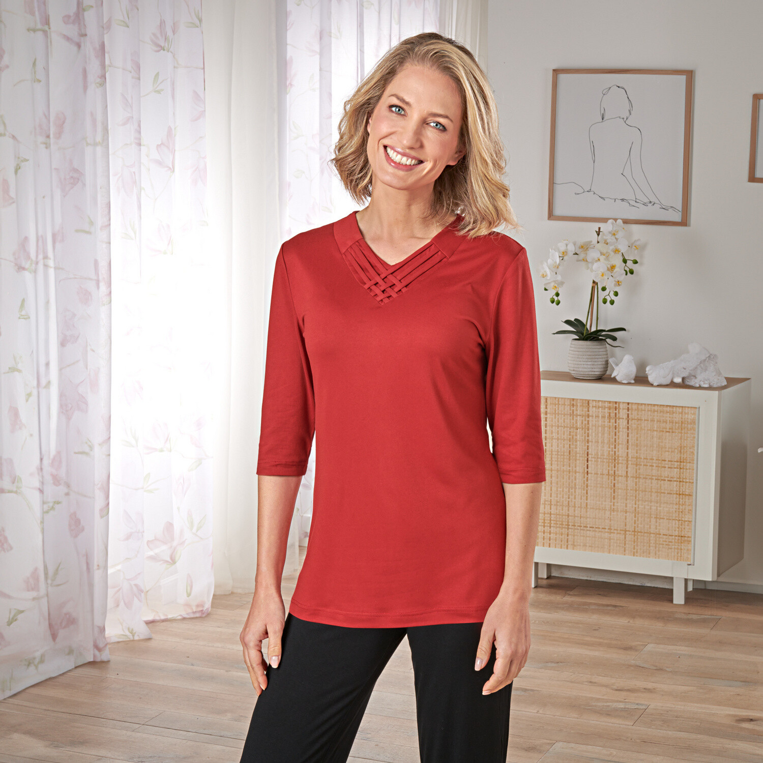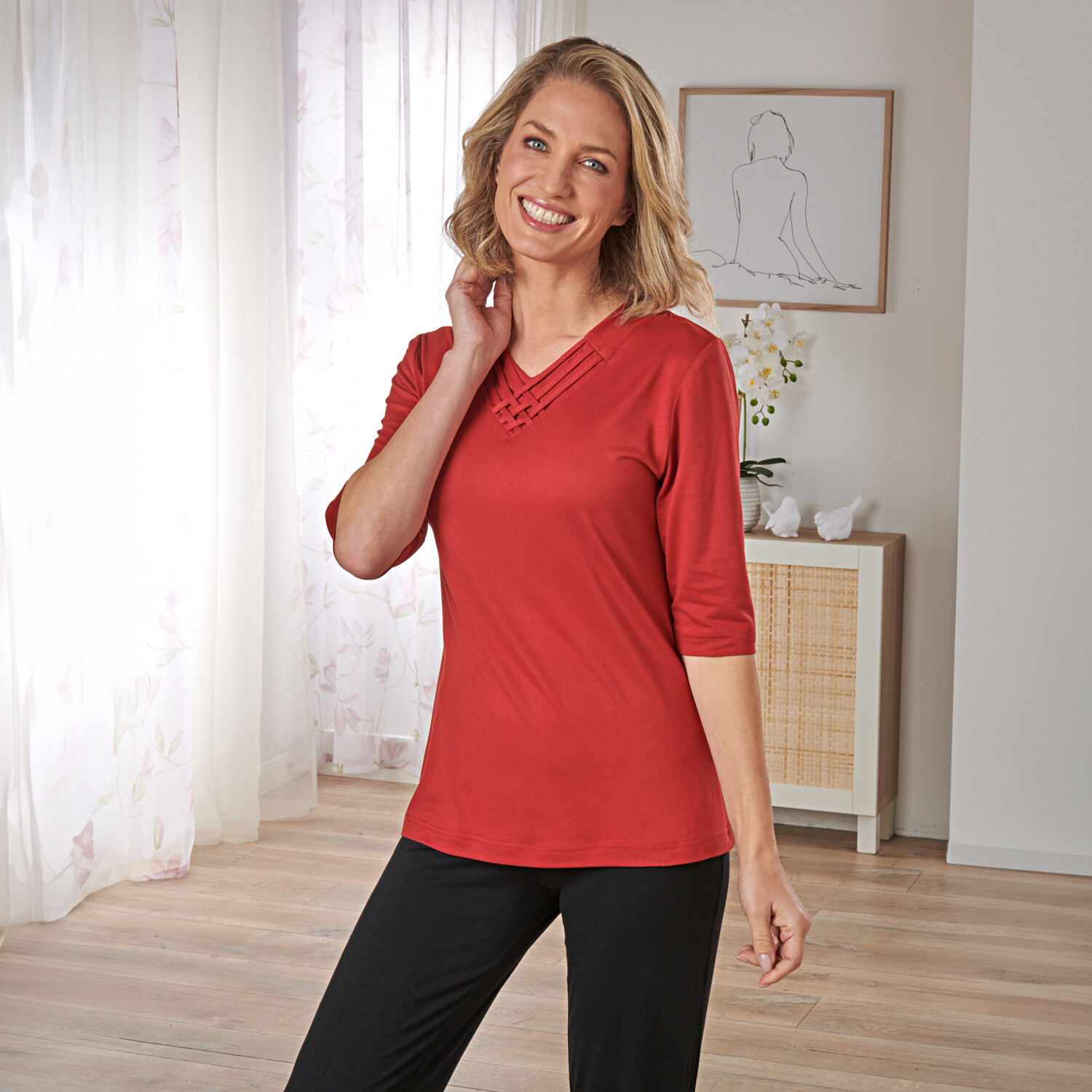 Móda se skrývá v diskrétních detailech! Objevte jednobarevné tričko se stojáčkem a žabičkováním, které se snadno kombinuje. Vzdušný úplet. Žabičkovaný stojáček. Dlouhé halenkové rukávy. Žabičkované konce rukávů. Rovný dolní lem. Lze prát v pračce.