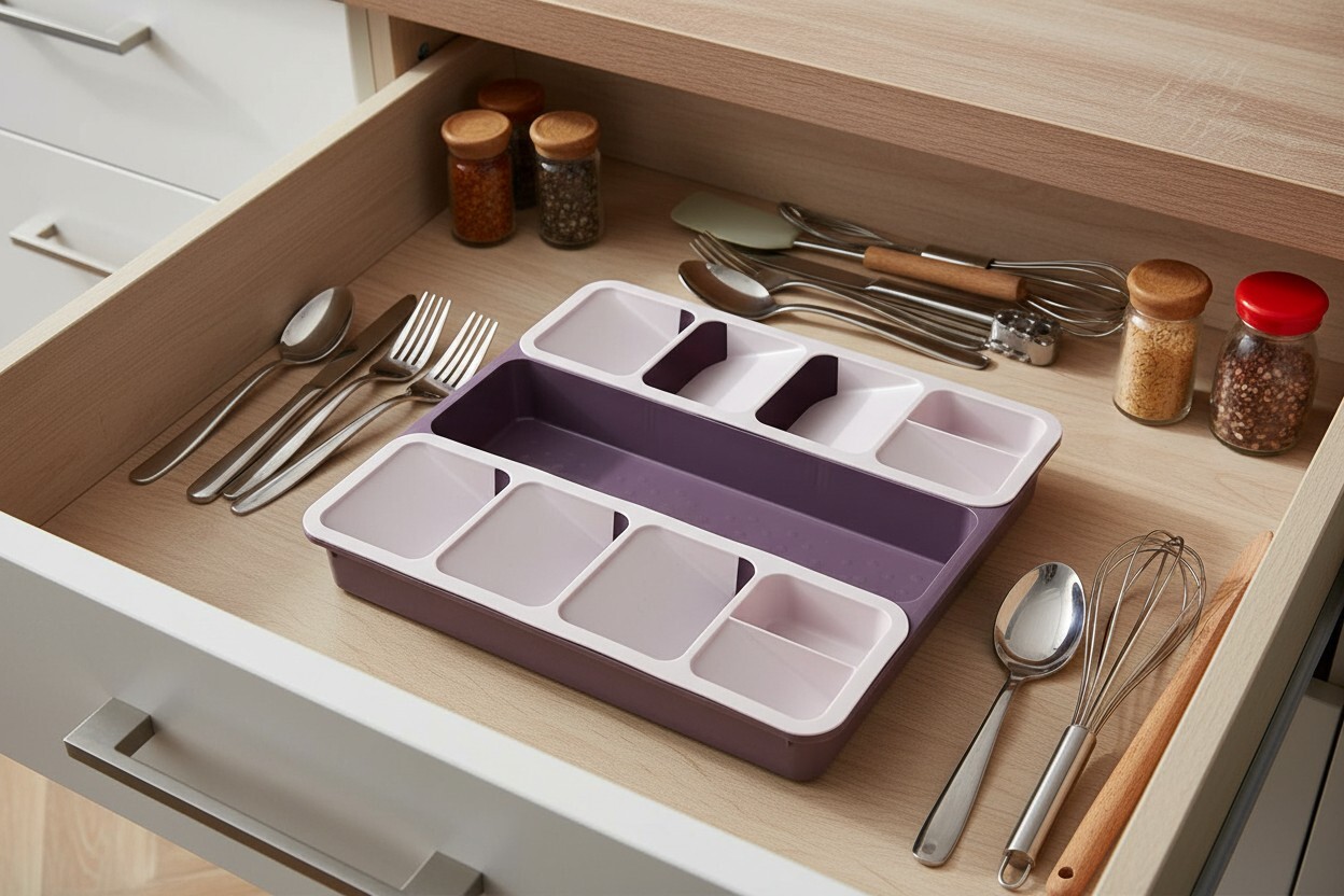 Usnadněte funkci zásuvkám, které volají po přehledném uspořádání. Díky chytrému a praktickému provedení je náš příborník přesně to, co vaše kuchyně potřebuje. Vejde se do něj ještě víc příborů nebo kuchyňského náčiní, než dosud. I přes velké množství uloženého náčiní budete mít snadný přehled.Materiál plastRozměry: 275 x 400 x 55 mm