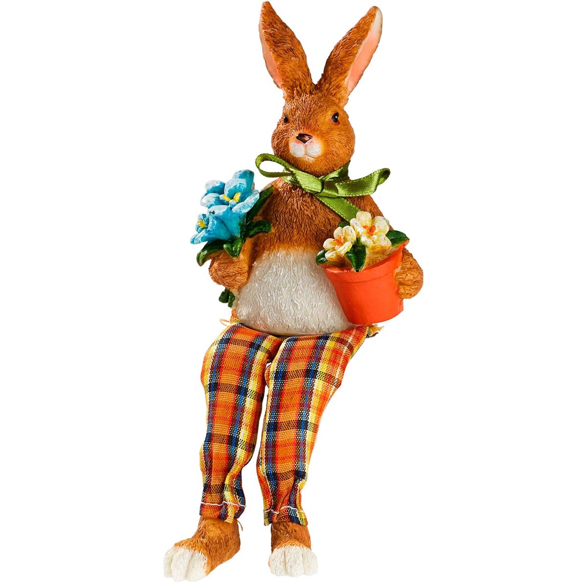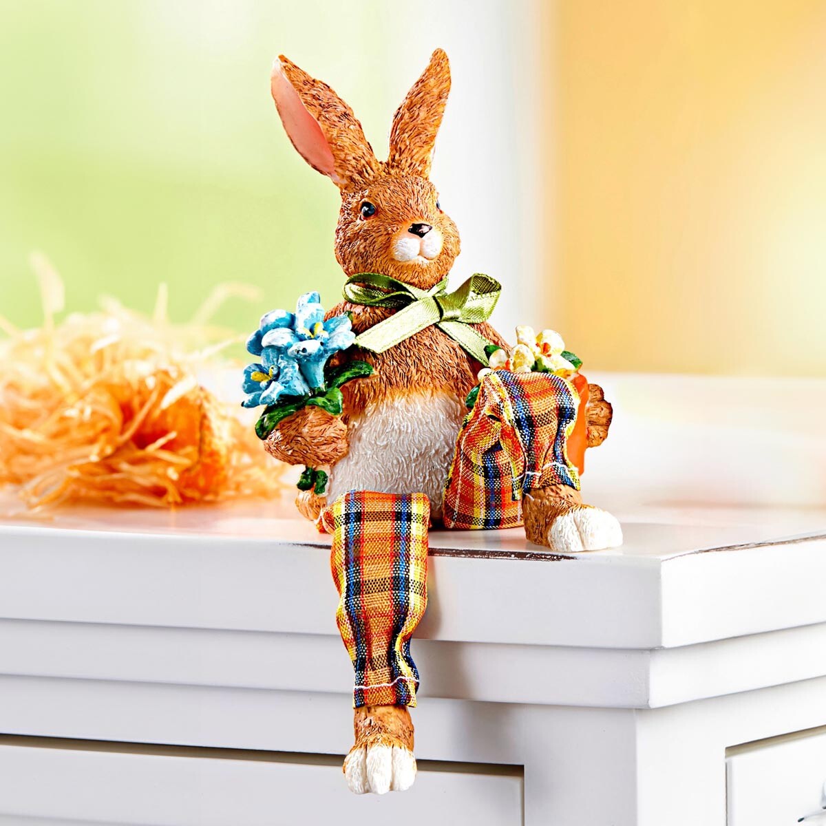 Tento veselý zajíc se bude nejlépe vyjímat na okraji police či parapetu. Nožky má pružné, takže se lehce přizpůsobí. Materiál: umělý kámen, textil. Rozměry: 18,5 x 18 cm.